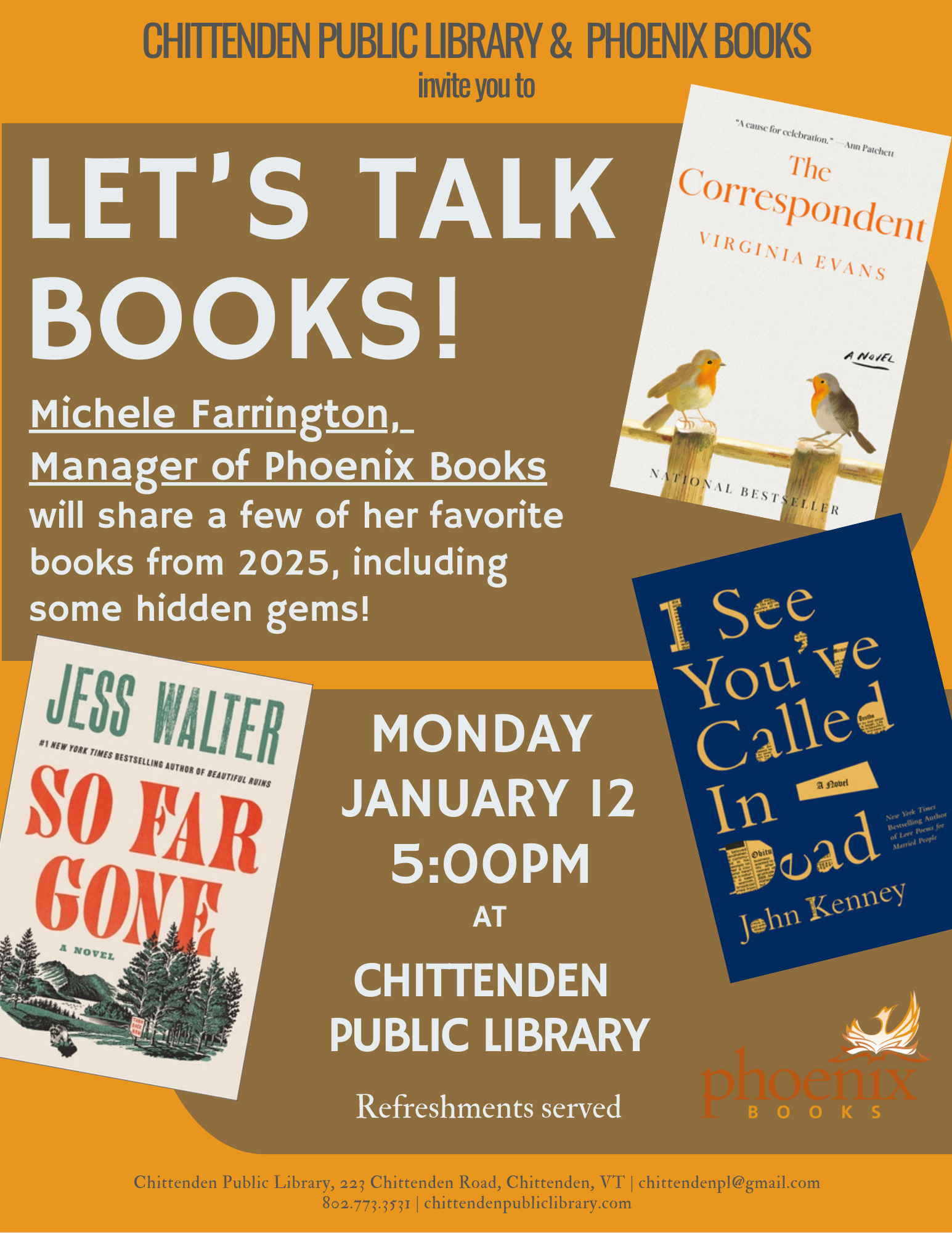 “Let’s Talk Books!” with Phoenix Books manager, Michele Farrington.