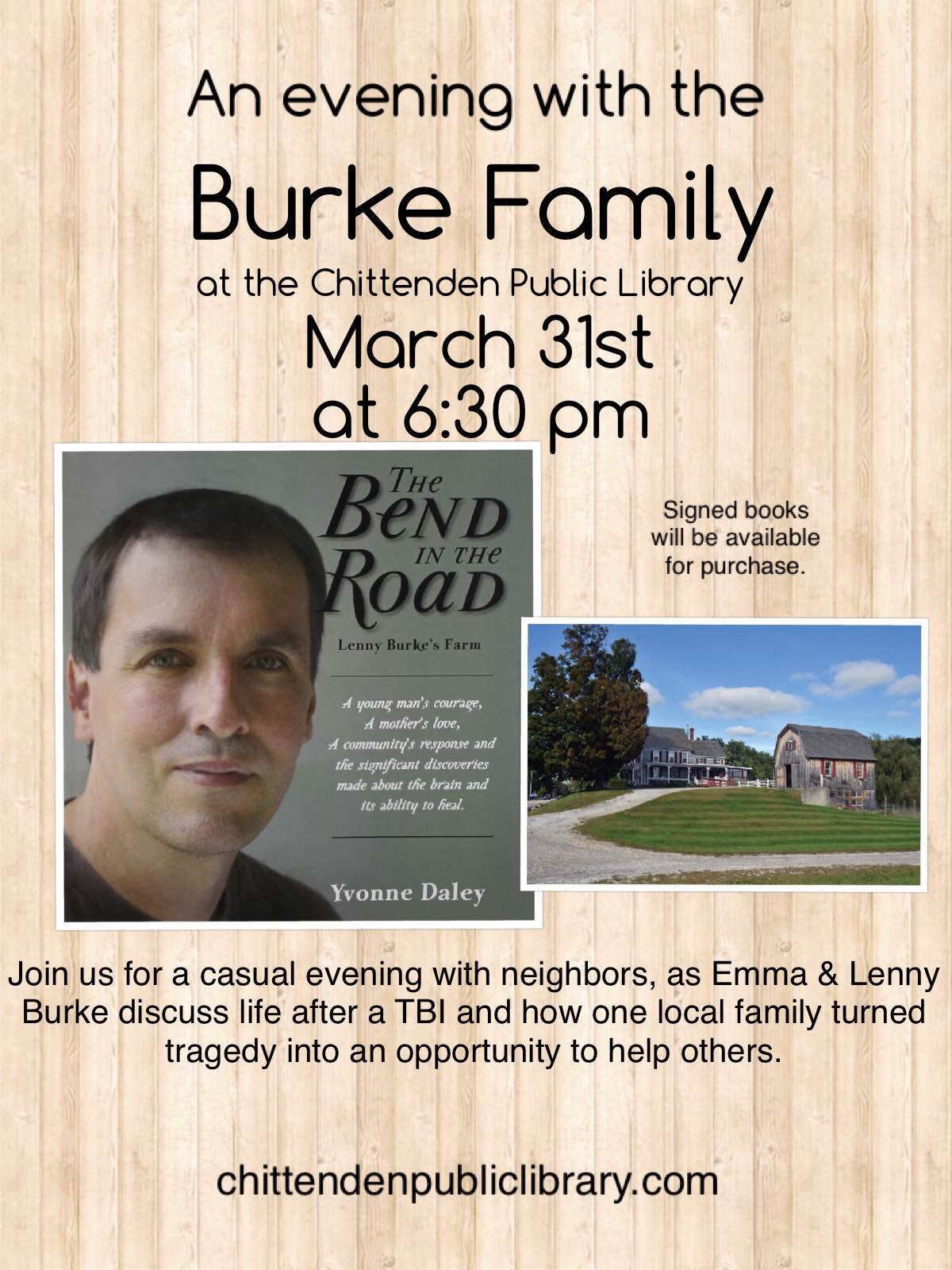An Evening with the Burke Family, March 31st at 6:30 pm Image Posted on March 14, 2016 by chittendenpubliclibrary Share this: Click to share on X (Opens in new window) X Click to share on Facebook (Opens in new window) Facebook Like Loading... Related