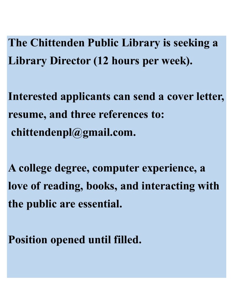 Image Posted on June 9, 2022 by chittendenpubliclibrary Share this: Click to share on X (Opens in new window) X Click to share on Facebook (Opens in new window) Facebook Like Loading... Related