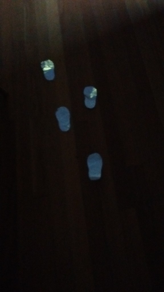 “Does anyone else see those ghostly footprints?” asked Mr Crab. “I do!” said Bunny. “Me too!” said Snowy. At last, everyone could see them. Floating and strange, they led in the direction of the crashing sound. The animals bravely decided to investigate.