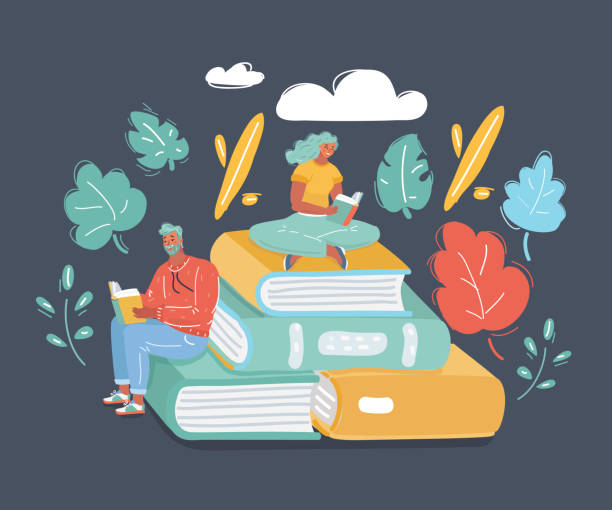 summer-time-reading-1 Published June 21, 2021 at 612 × 510 in summer-time-reading-1 Cartoon vector illustration of couple sitting on big stack of book and reading. Human characters on dark background. Literature fans or lovers, stuedent, education concept, fair
